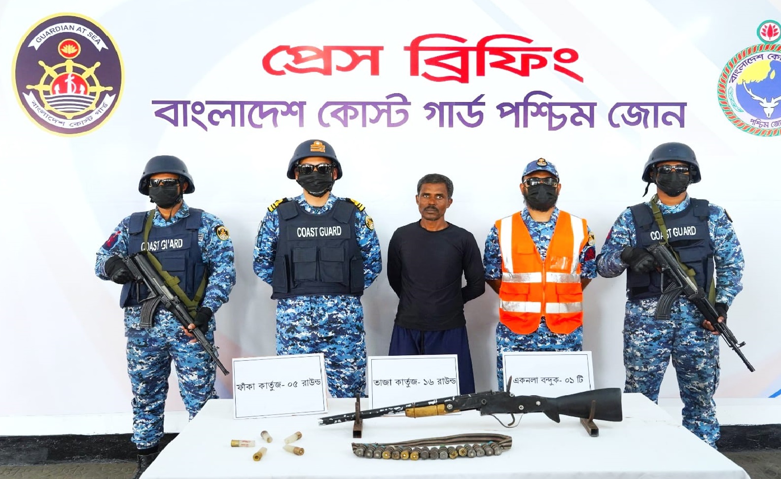 শেখ রাফসান মোংলা প্রতিনিধিঃ কোস্টগার্ডের অভিযানে অস্ত্র ও গোলাবারুদসহ সুন্দরবনের দুর্ধর্ষ ডাকাত করিম শরীফ বাহিনীর ১ সদস্যকে আটক করা হয়েছে।