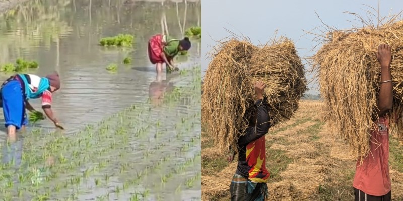 বাকেরগঞ্জে আমন ধান ঘরে তুলতে ও বোরো ধান চাষে ব্যস্ত কৃষক-কৃষাণিরা