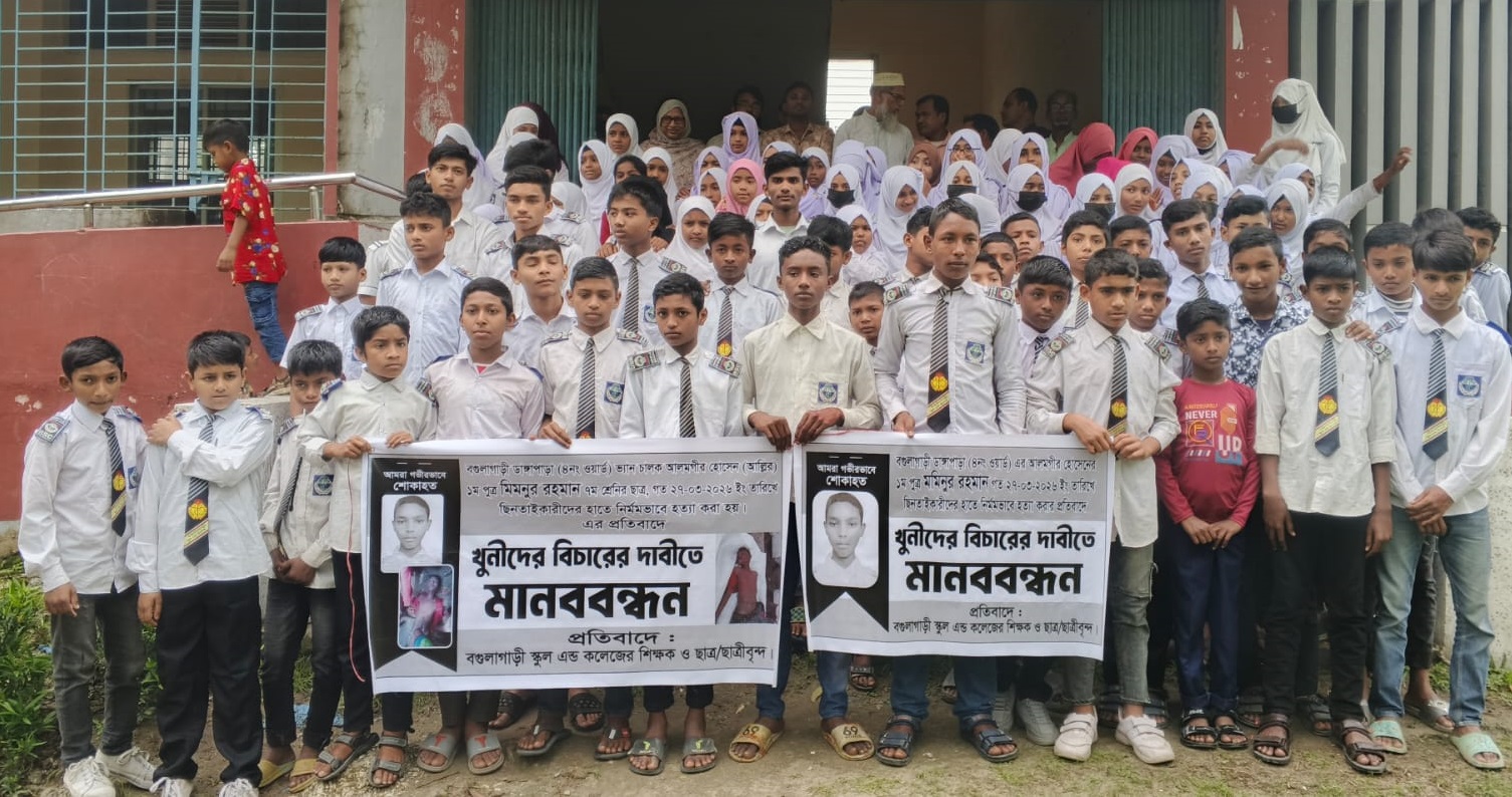 জলঢাকায় শিক্ষার্থী হত্যার প্রতিবাদে সহপাঠীদের মানববন্ধন