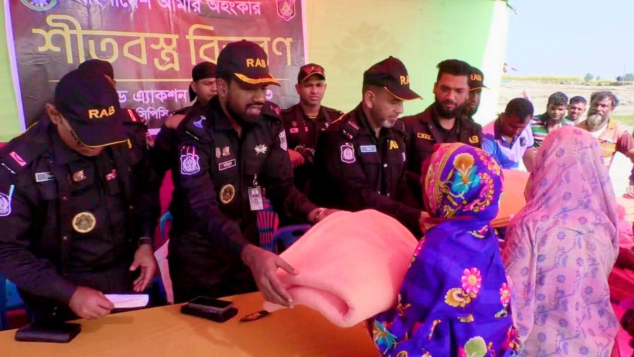 র্যাব-১৩কামারজানির চরে শীতবস্ত্র পেল শতাধিক শীতার্ত মানুষ